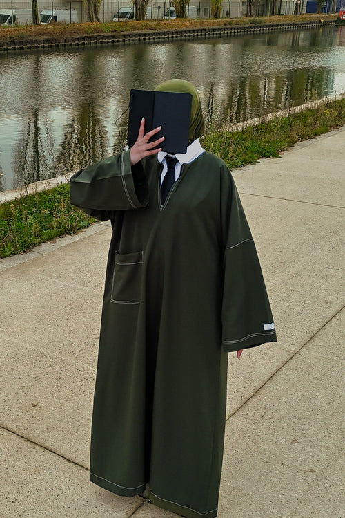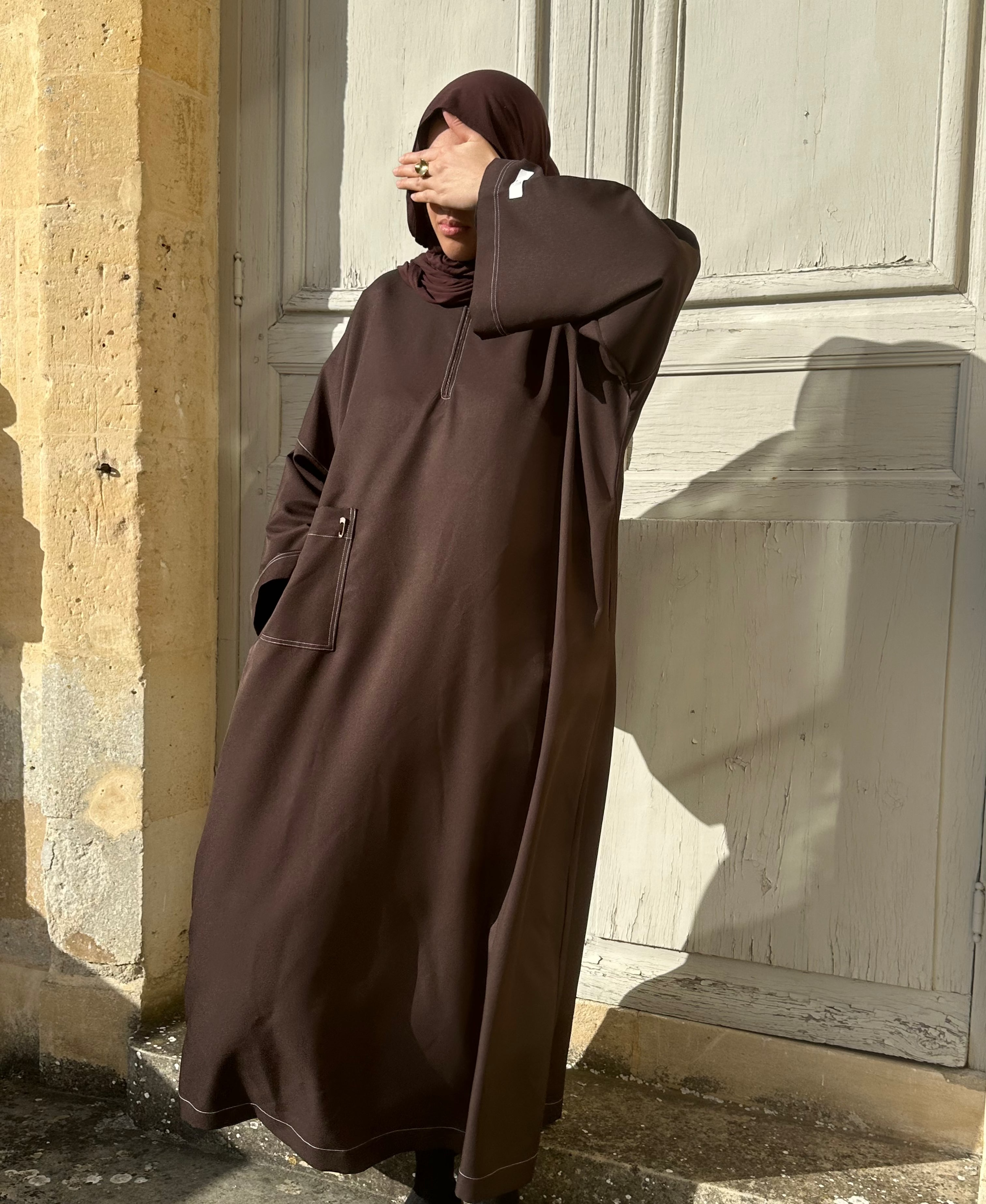 Une abaya confectionnée en atelier, loin de la production standardisée. Fini les poignets découverts. Fini les abayas trop courtes. Pensées pour les femmes que la norme oublie. A partir d'1m69 à 1m90.